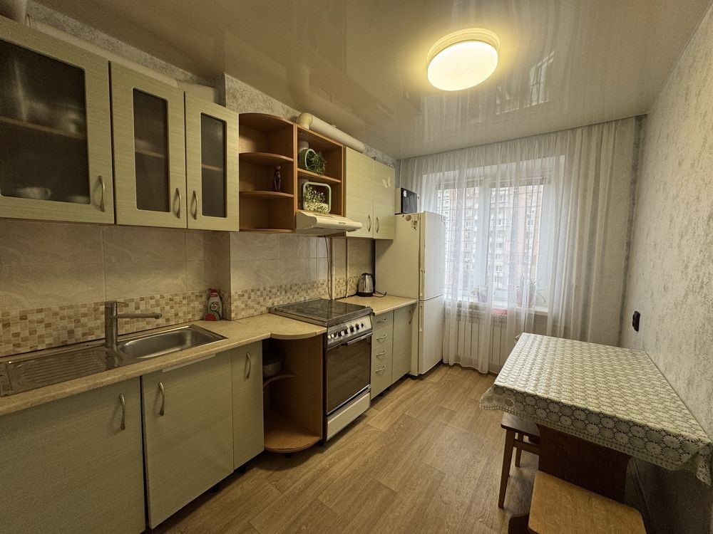 Косметичний ремонт. Продаж з меблями та технікою . Середній поверх, не кутова . Квартира дуже тепла , лічильники на все. Невеликі комунальні платежі. Поруч школа , садочок, магазини ТРЦ.