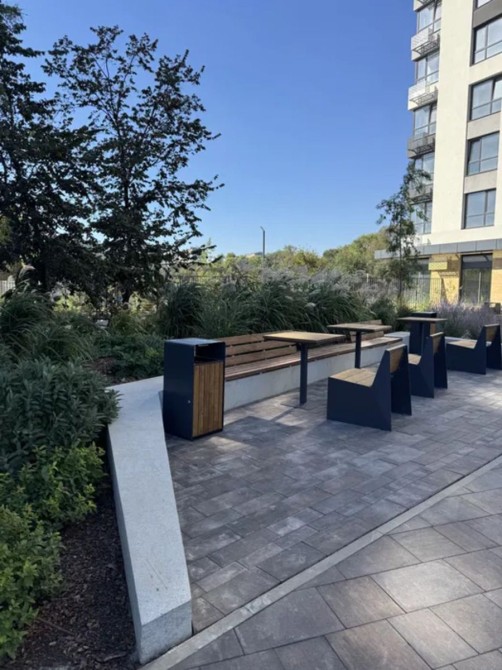 - у холі працює консьерж-сервіс, пост охорони й зона відпочинку. Для родин з немовлятами обладнана кімната для візочків біля ліфту, а для самих малюків - розкішний дитячий майданчик;