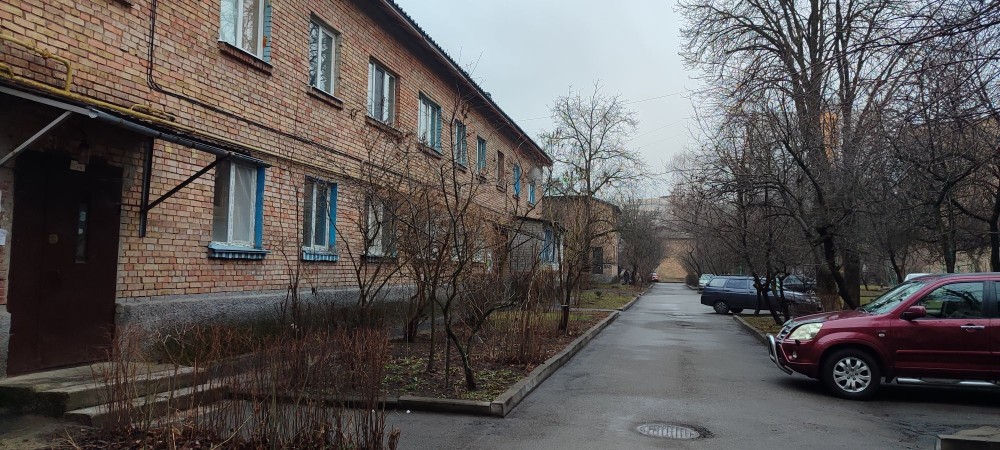 Тепла квартира на першому поверсі двоповерхового цегляного будинку, вул. Святошинська 45. Можна під бізнес, одне вікно виходить на Святошинську, три в двір. Металопластикові вікна, квартира під ремонт. Гарне місце розташування, поряд транспорт, магазини, супермаркети, школа, садочки