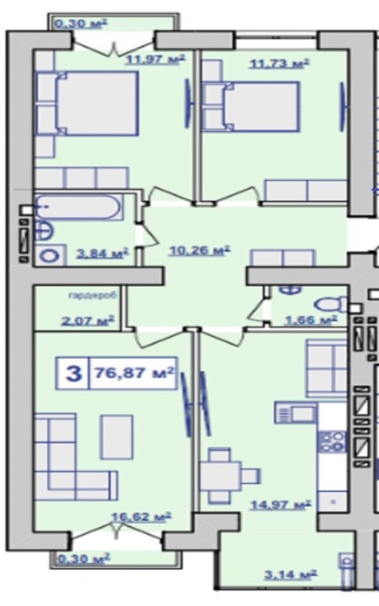 Трикімнатна квартира за ціною двокімнатної