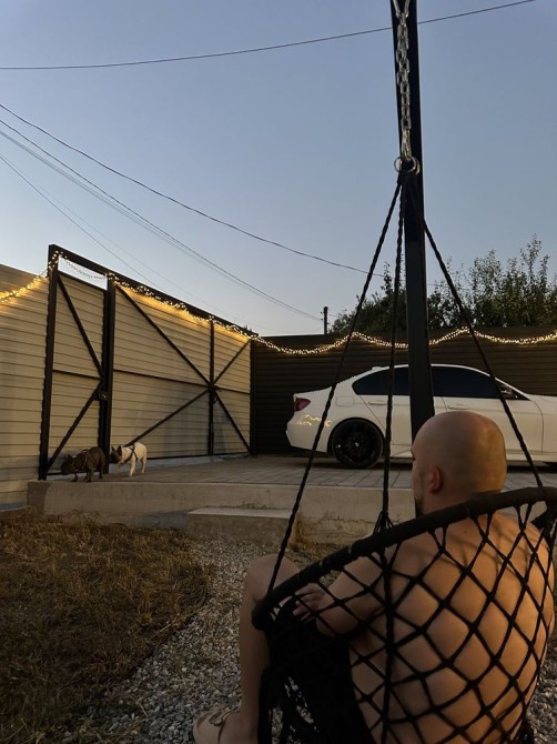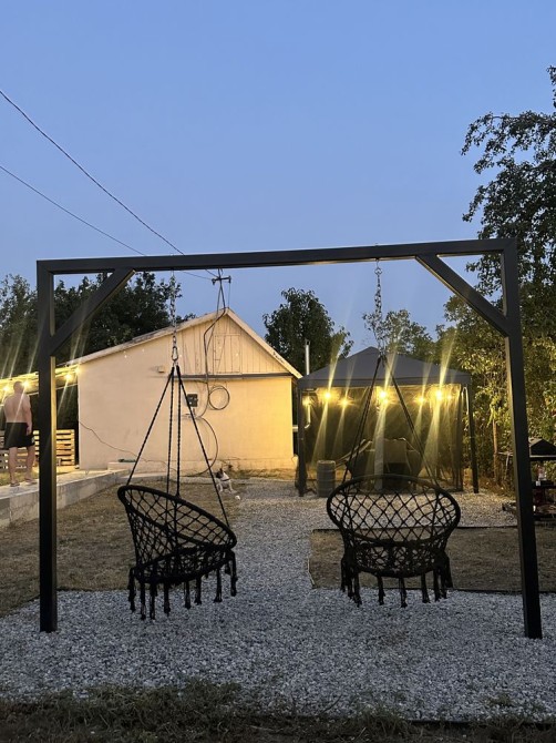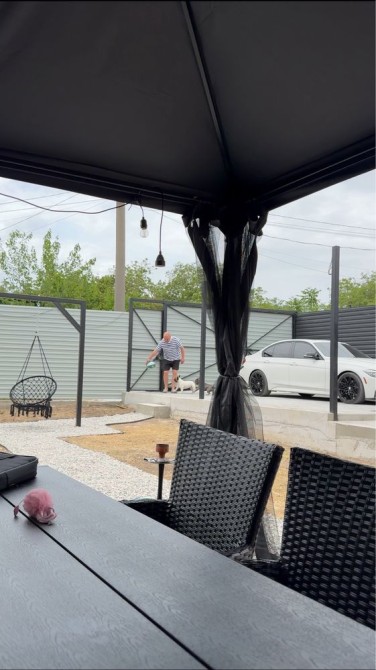 За домом так же есть территория, там деревья и виноград.