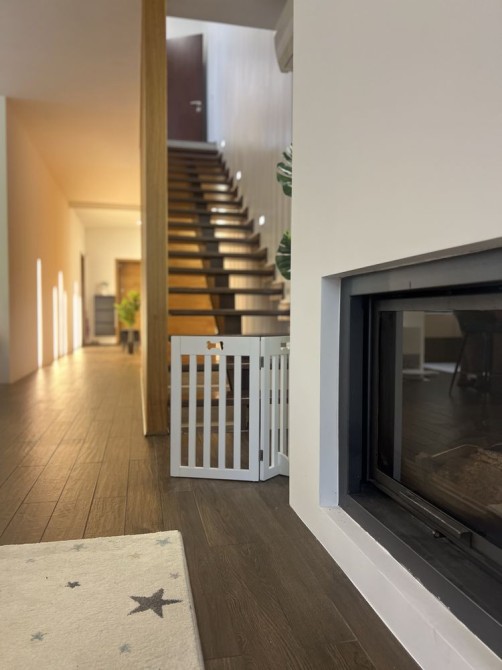 На первом этаже прихожая, санузел, кухня-гостиная с выходом на террасу, камин.