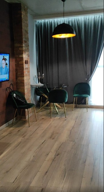 В квартирі сучасний ремонт і облаштування стильними меблями, а також якісною технікою. Правильне зонування простору під кухню, столову, а також під спальню дає можливість комфортно розміститися невеликій сім'ї.