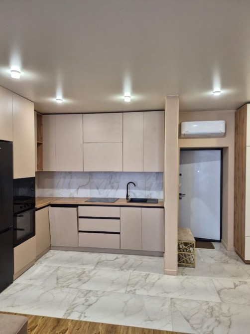 Кухня-студія площею 23,4 м² поєднана з вітальнею — ідеальний простір для комфортного життя. Електричне опалення, встановлено кондиціонер. Квартира продається з усіма меблями та побутовою технікою.