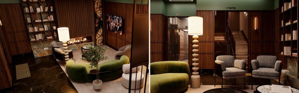 - камінна лаунж-зала з відпочинковою зоною для мешканців