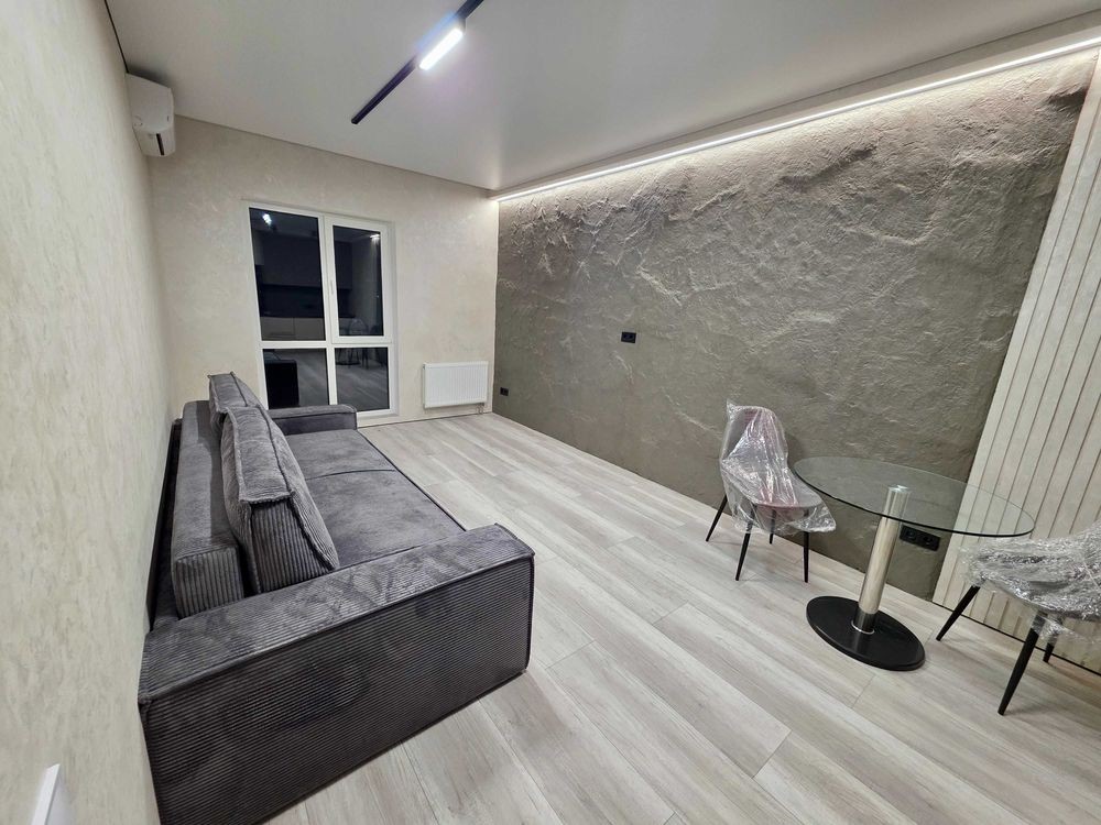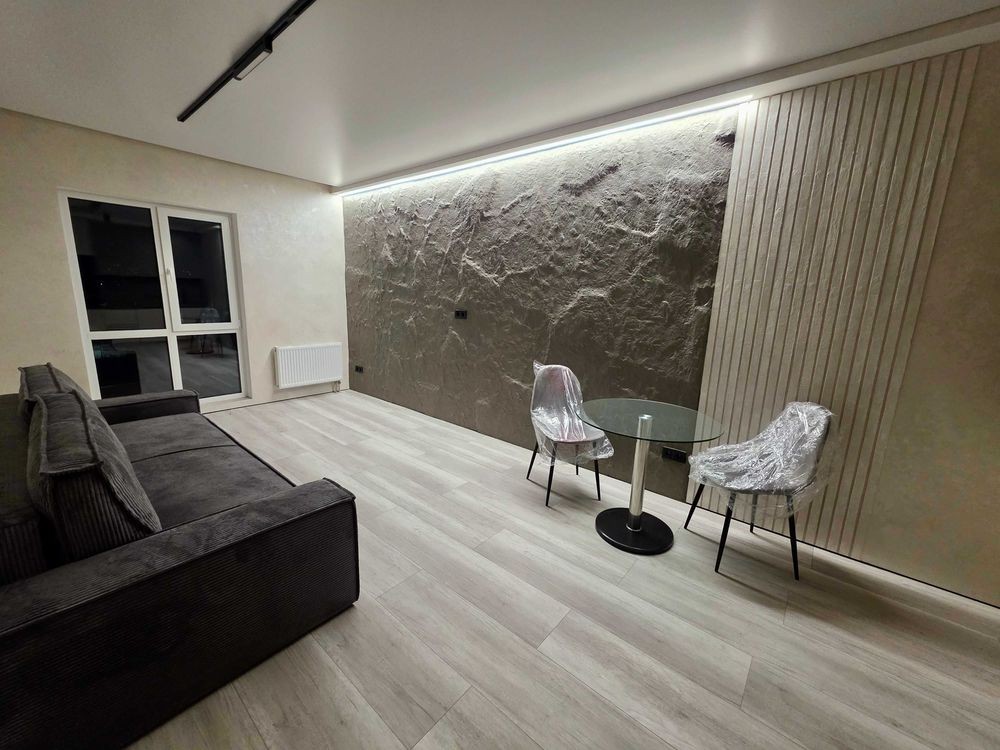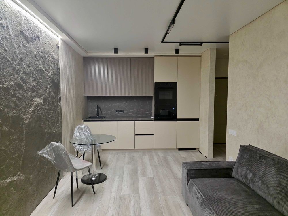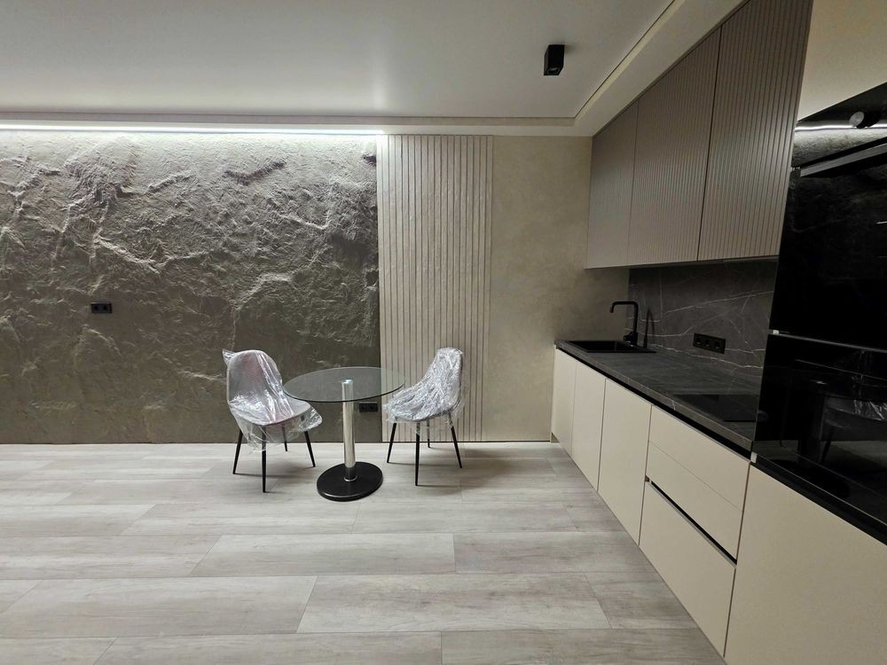 Квартира виконана в стилі мінімалізм з елементами неолофту, що створює комфортну та затишну атмосферу. Простора кухня-вітальня укомплектована дизайнерськими меблями та вбудованою технікою преміум-класу. У спальні ви знайдете затишок для повноцінного відпочинку, а сучасний санвузол обладнаний якісною сантехнікою.