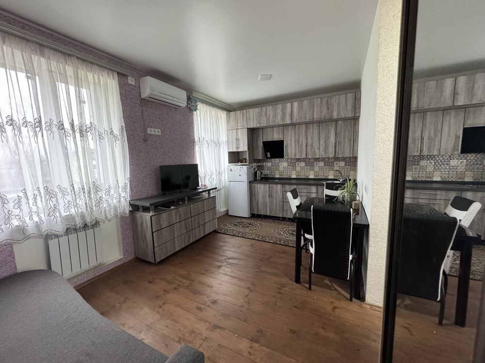 Продаємо власну однокімнатну квартиру з якісним ремонтом по вулиці Леоніда Каденюка 18, ж/м Придніпровський, Самарський р-н, Лівий берег. Квартира знаходиться на другому поверсі двоповерхового будинку. Будинок після якісної реконструкції забудовника 2020 року, перекриття з/б плити, стіни цегла, зовнішнє утеплення поліестерол 100 мм, дах металочерепиця, вікна металопластикові, замінені всі комунікації, опалення автономне електричне. Квартира продається з меблями та технікою, як на фото. Одразу можна жити. Ремонт робили для себе у 2021 році, все зроблено якісно - електрика, труби, сантехніка, підлога, лічильники є на все. Квартира тепла, вікна виходять у двір, деревʼяна підлога, натяжні стелі. У квартирі жили півроку. Будинок має зручне розташування - поруч кінцева зупинка міського транспорту, школи, дитячі садочки, будинок культури, парк, пляж, супермаркети, базар. До центра міста міським транспортом їхати 30 хв. Для реального покупця можливий торг.