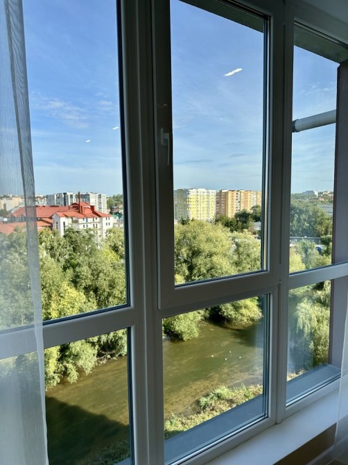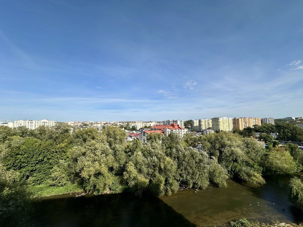 Вигляд з панорамних вікон на річку та все місто
