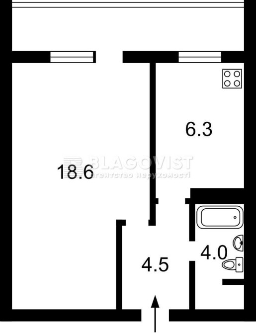 Житлова площа: 18,6 кв.м.