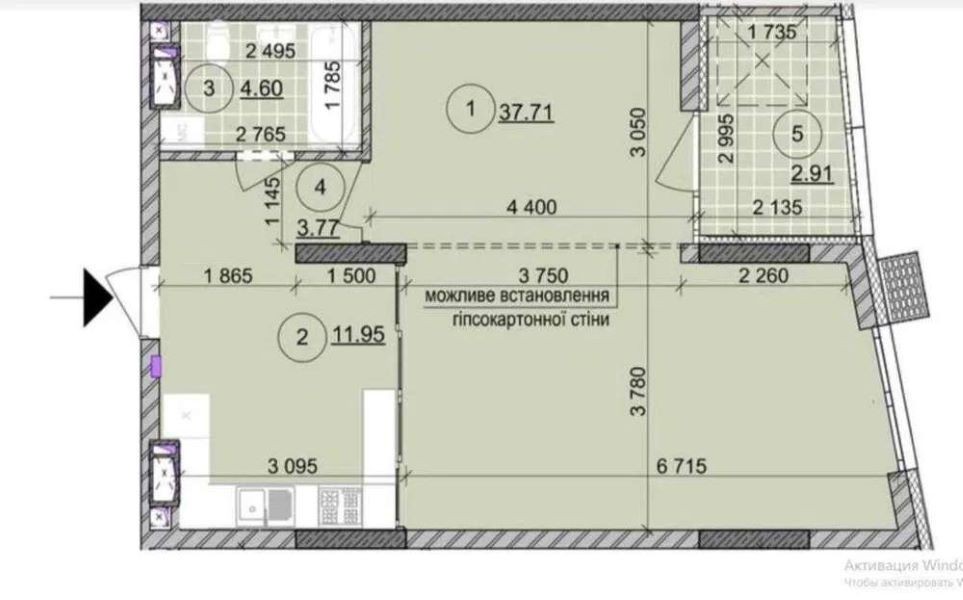 • Общая площадь 61 м2