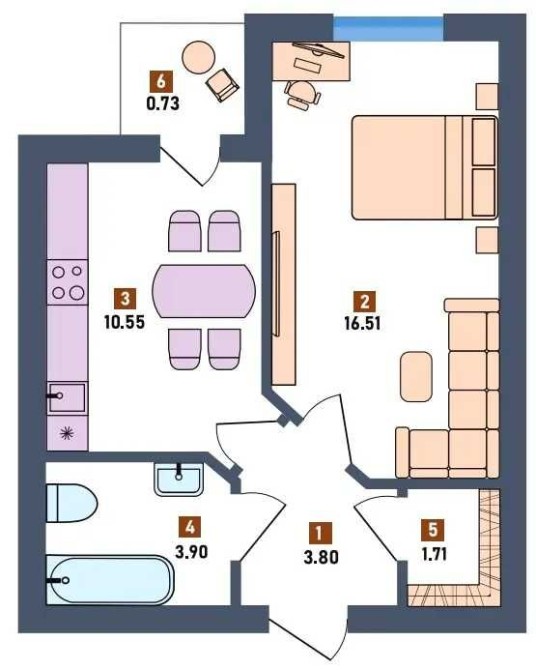- 2 просторі санвузли по 6м2 - для зручності обох "крил" квартири