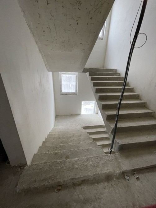 Секція готова, тривають внутрішні оздоблювальні роботи — встановлено вхідні двері до квартир, укладена плитка в під’їздах (стіни ще не оздоблені, ліфт у процесі монтажу).