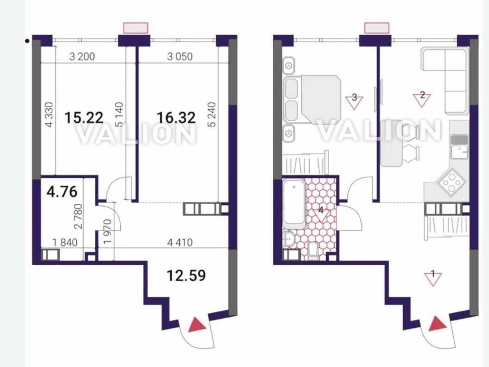 • Двухкомнатная