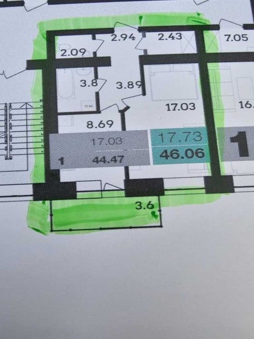 Кухня вітальня 17кв.м. та спальня 9кв.м.
