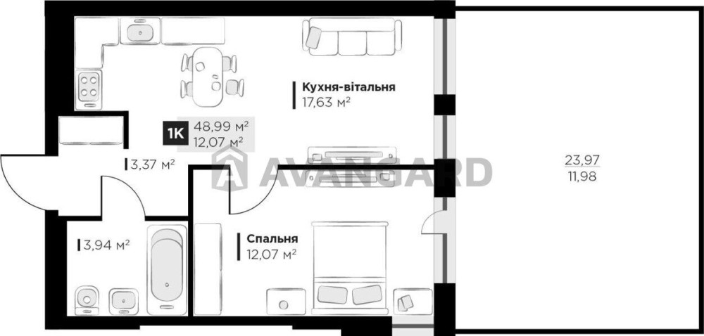 Загальна площа 48,99 кв.м