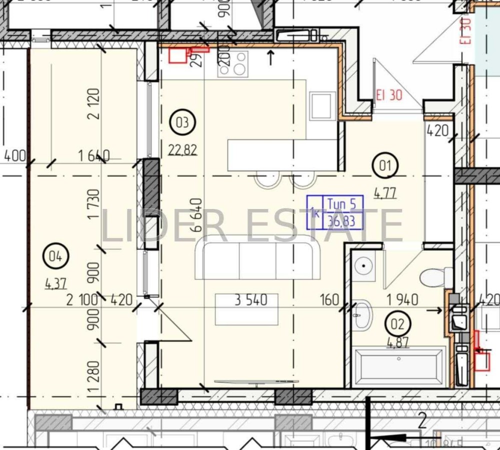 • Общая площадь 37 м2