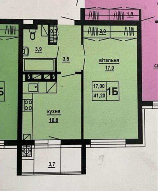 Площа: 41,2 м²