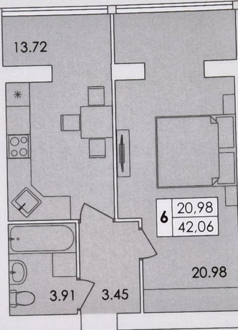• Общая площадь 42 м2