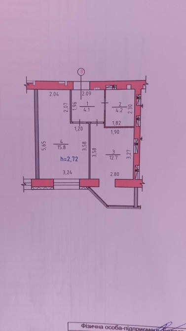 - загальна площа 37 м2, кухня 12.4 м2;