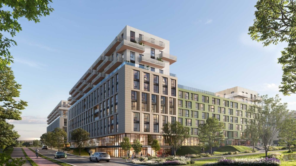 Архітектурний підхід поєднує інноваційні та естетичні рішення. Проєкт складається з різноманітних житлових секцій висотою від 5 до 10 поверхів з паузами для комерційних просторів, що надає будівлям сучасного та функціонального вигляду. Надійний та довговічний вентильований фасад підкреслює лінію комерції. Передбачені енергоефективні вітражні системи. Високоякісні фасадні штукатурки створюють неповторний характер фасадів. Кольори та відтінки оздоблення були ретельно підібрані для створення більш динамічної та цікавої композиції..Планування квартир ретельно розроблене з врахуванням усіх вимог ергономіки та зручності. У даному комплексі знайдеться простора та зручна квартира як для великої сім'ї, так і компактна та затишна для молоді. Внутрішні двори комплексу виключно пішохідні, що гарантує комфорт та безпеку для мешканців, зокрема для маленьких дітей. Для активного дозвілля передбачені сучасні дитячі та спортивні майданчики, а також зони для релаксу з лавками, зеленими насадженнями та продуманим ландшафтним дизайном. Висаджені дерева, кущі та квіти створять атмосферу затишку і природної краси, перетворюючи двори на оазу спокою в межах житлового комплексу.