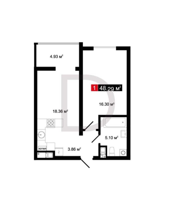 Площа: 48.29 м2.