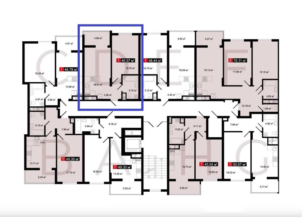 • Общая площадь 48.37 м2