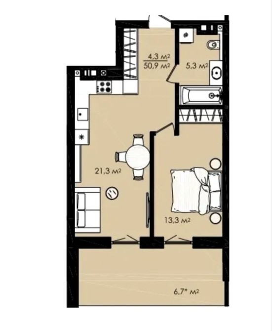 • Общая площадь 50.9 м2