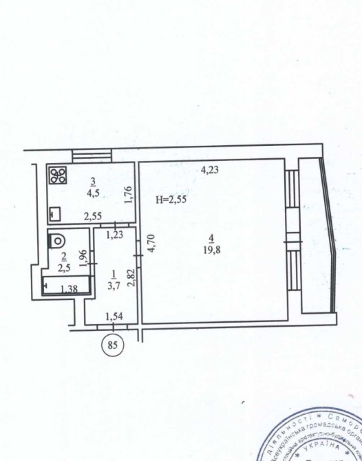 • Площадь кухни 4.5 м2