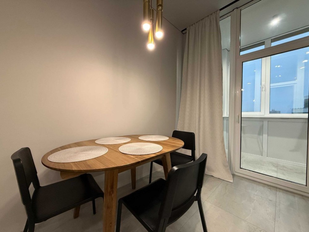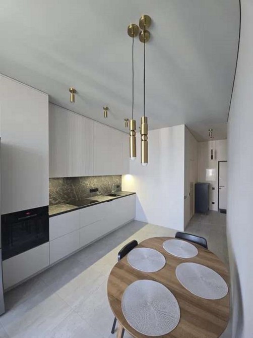 Кухня ідеально поєднує сучасний дизайн, преміальну техніку та максимальний комфорт для приготування їжі та відпочинку. Обладнана всією необхідною технікою: варильна поверхня, духова шафа, великий двокамерний холодильник Bosh, посудомийна машина.