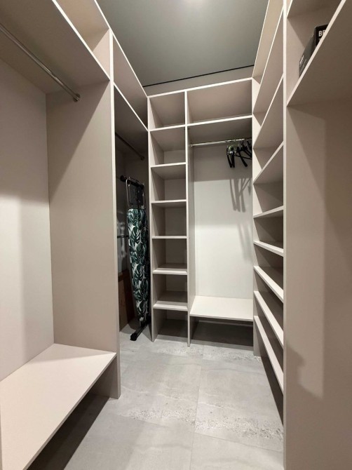 Окрема гардеробна кімната дозволяє звільнити житловий простір від зайвих шаф.