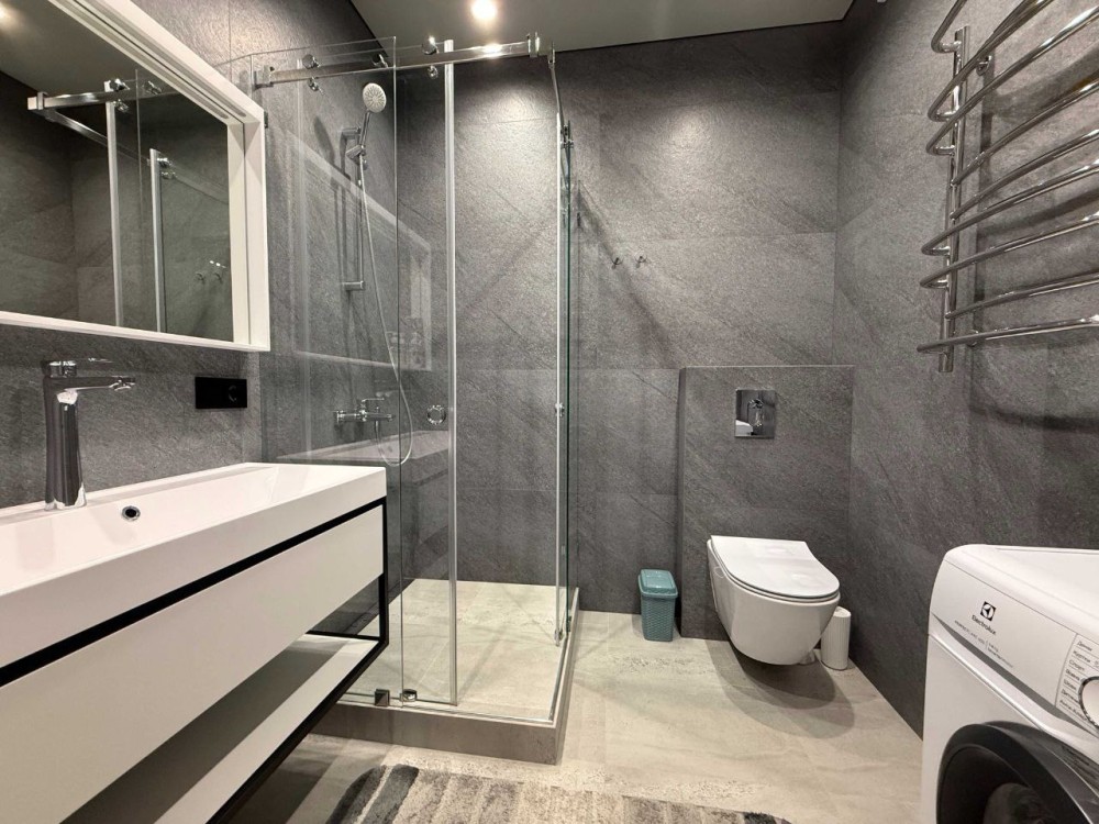 Квартира повністю мебльована та обладнана якісною, дорогою технікою та матеріалами.