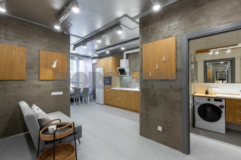 Все що стосується комфортного проживання вже встановлено і функціонує. Це такі речі як, прохідні вимикачі освітлення кожної зони (загальне світло, локальне та допоміжне). «Мастер» вимикач всього освітлення при виході з квартири. Посудомийна машина, пральна машина, сушильний автомат, бойлер, духова шафа з функцією мікрохвильової печі. Вбудована гладильна дошка, місце зберігання для драбини та побутового інвентарю. Передбачено три місця встановлення телевізорів, облаштоване робоче місце з ергономічним кріслом та розведена вся слабо-струменева мережа. Ортопедичний матрац Sleep Fly Organic Delta з подвійний рівнем пружинних блоків IQ Double.