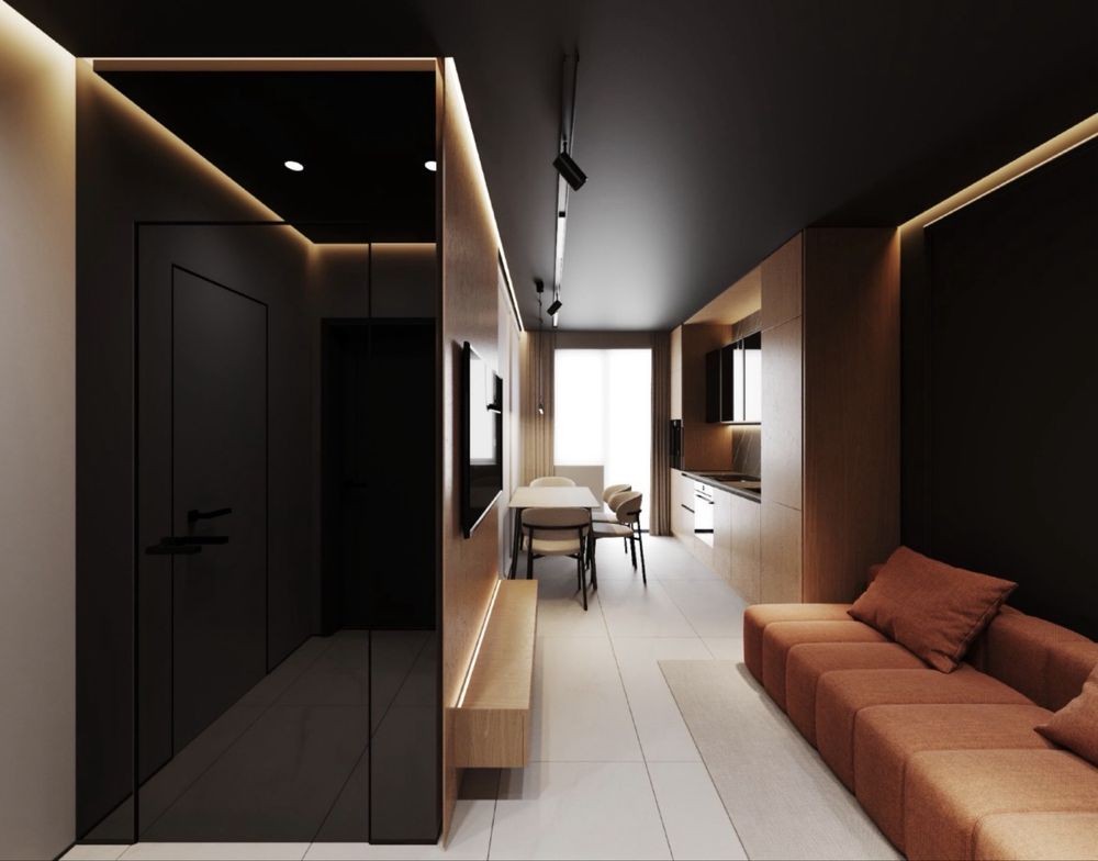 І для потенційного покупця великий бонус-вже готовий дизайн проєкт кухні-коридора від дизайнера!