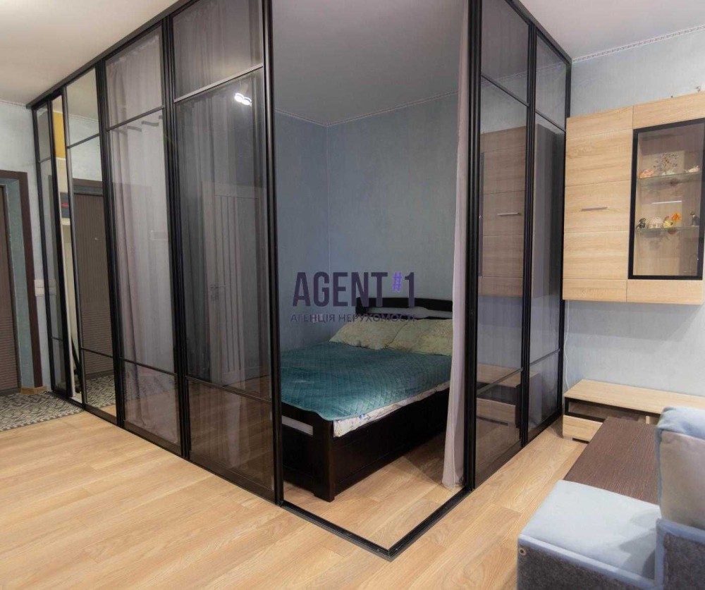 Загальна площа 40 кв.м. Відокремлена спальна зона та наявна гардеробна кімната.