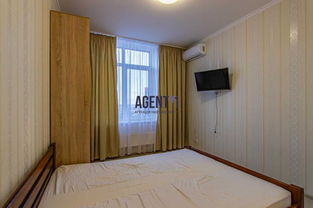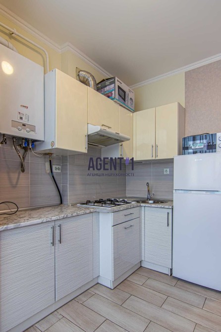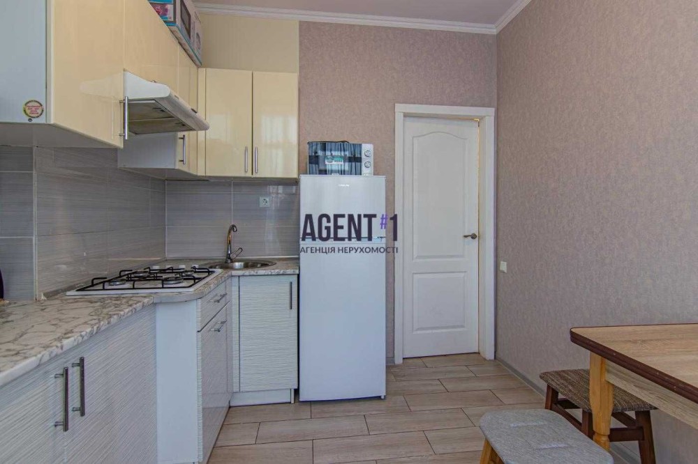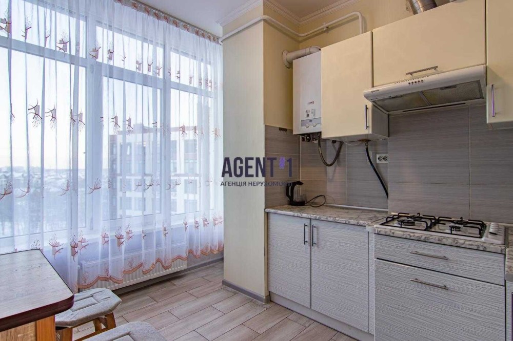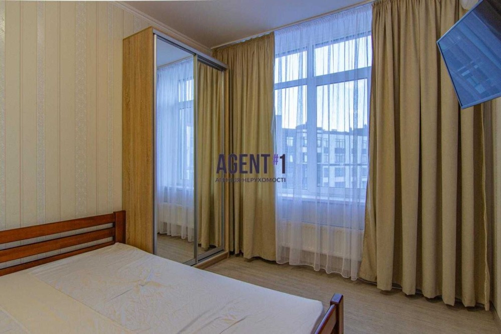 В квартирі виконан якісний ремонт, укомплектована меблями та технікою. Залишається все. Кімната правильної форми 13.9 кВ.м: ліжко двоспальне, шафа-купе,робочий стіл, телевізор, кондиціонер. Кухня 8.7 кВ.м : вбудована кухня, варильна газова поверхня, мікрохвильова піч, холодильник, стіл з стільцями, двоконтурний газовий котел. Санвузол : ванна ,унітаз, пральна машина автомат. Квартира всередині будинку, дуже тепла та світла. Будинок вже повністю заселений. Комплекс закритого типу, територія під охороною. Поруч красивий парк з спортивними майданчиками, зона барбекю, супермаркет Фора.