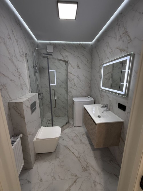 • Санвузол з ванною, пральною машиною, якісною сантехнікою, дзеркалом та шафою для зберігання