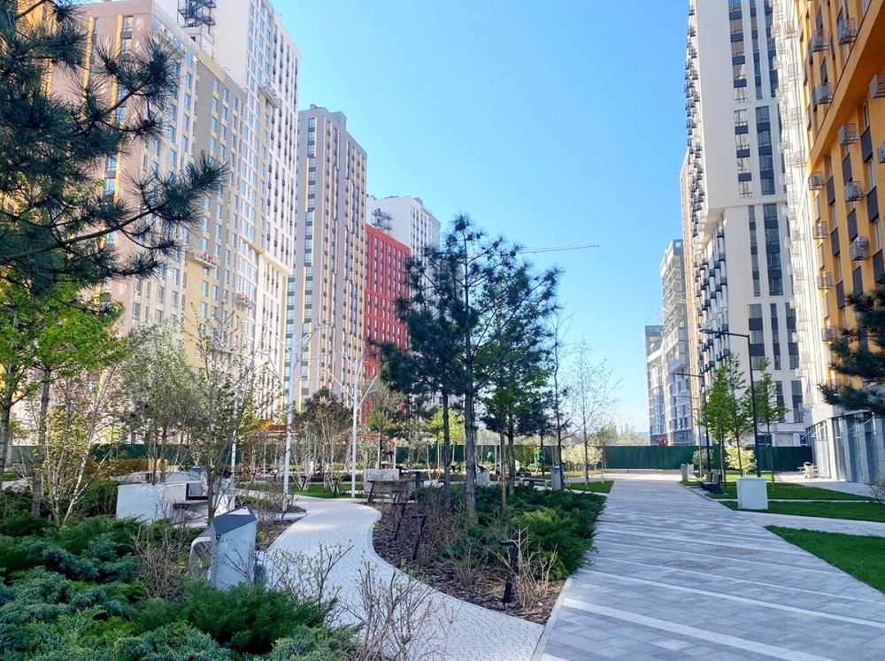 Закрито територію з ландшафтним дизайном, фонтанами та лаунж-зонами. На території ЖК: спортзал, дитячі майданчики, кафе, магазин, перші поверхи комерція, житловий обладнаний двір.
