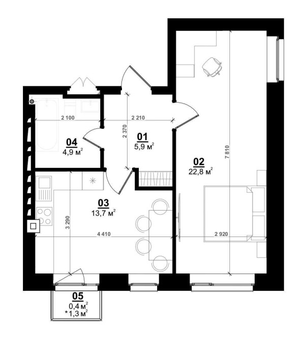 • Общая площадь 47 м2