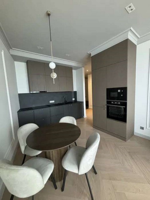 Квартира обладнана всім необхідним для комфортного проживання. В ремонті використали: натуральний паркет, двері Danapris, електричний підігрів підлоги, сантехніку від Grohe та Ravak; бойлер місткістю 100 літрів від Ariston; пральна, сушильна машина, холодильник, духова шафа, мікрохвильова піч, плита та посудомийна машина від Gorenie.
