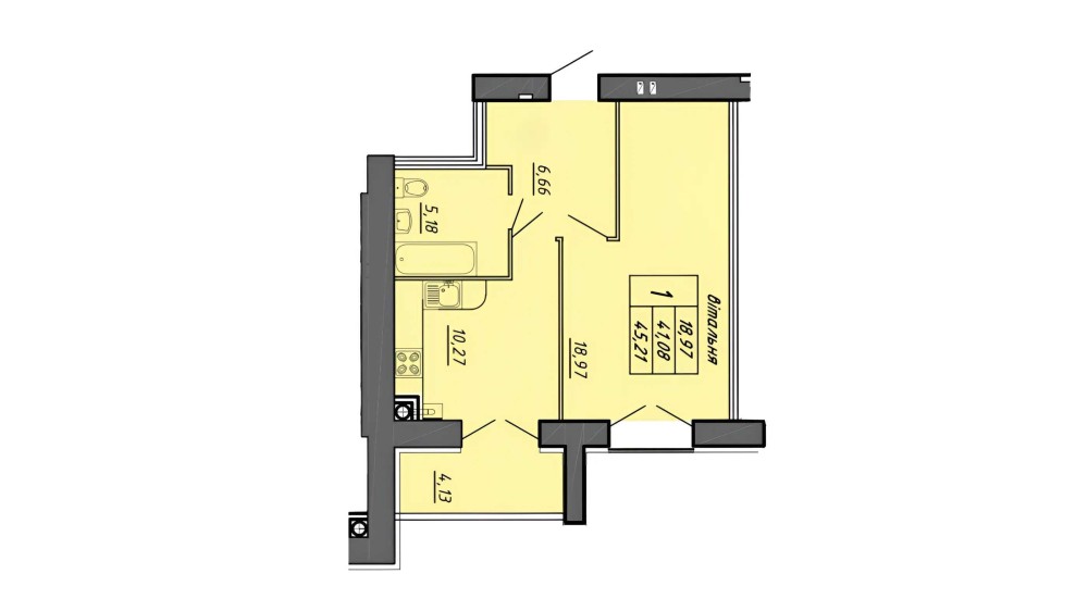 • Общая площадь 45.41 м2