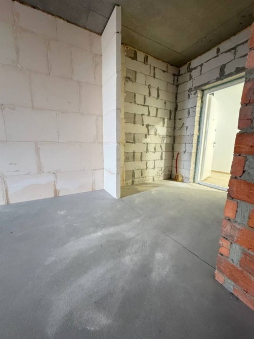 Велика простора кухня вітальня з панорамними вікнами, ізольована кімната з нішею під гардеробну, залита стяжка крім санвузла, від забудовника газовий котел та радіатори.