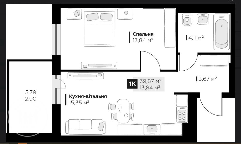 • Общая площадь 40 м2
