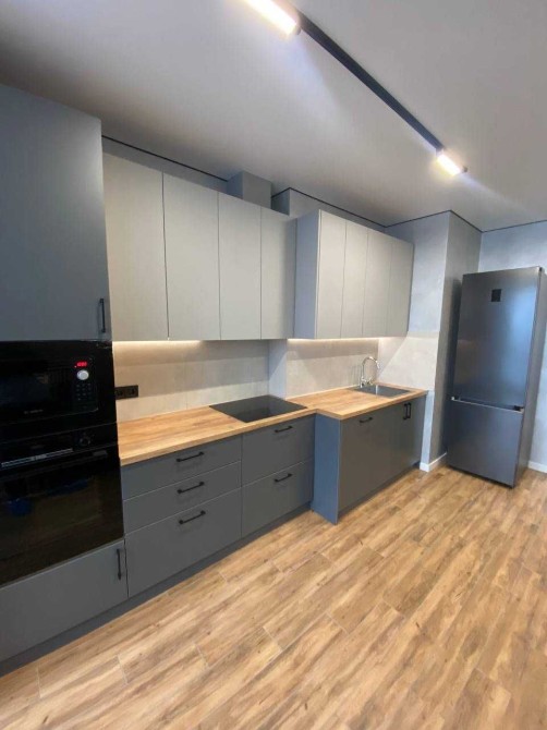 Вся вбудована техніка (духова шафа, варильна поверхня, мікрохвильова піч, посудомийка) фірми Bosh, холодильник та пральна машина Samsung.