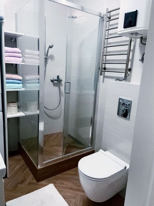 Квартира з гарним та сучасним ремонтом, є необхідні меблі та техніка. Меблі виготовлені на замовлення з натурального дерева: кухня, двері, шафи, диван, стільці, стіл та ліжко (ручна робота). Багато місць для зберігання: усі шафи та кухня вбудовані під стелю — у спальні, коридорі, ванній та кухонній зоні. Є підігрів підлоги в обідній зоні та біля дивану.