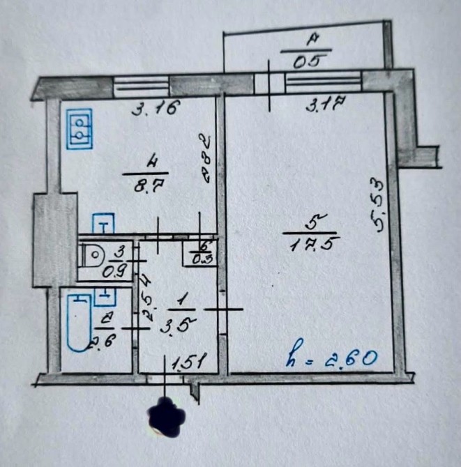 • Площадь кухни 8.7 м2