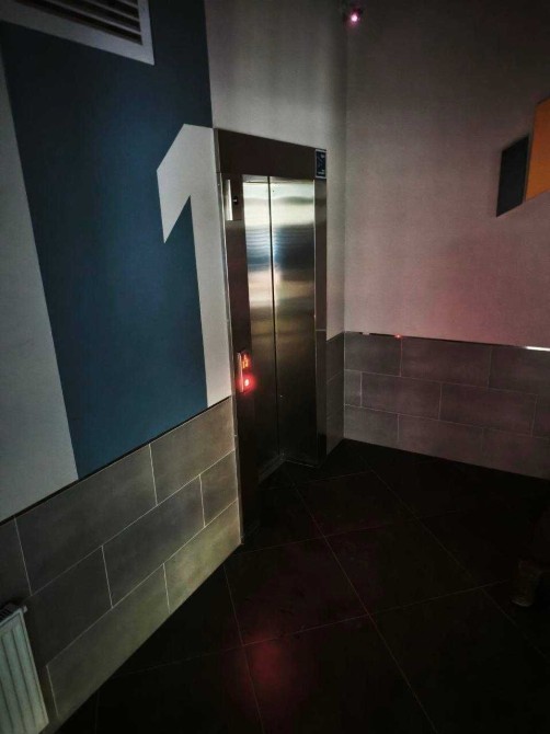 Просторий під'їзд, три ліфти.