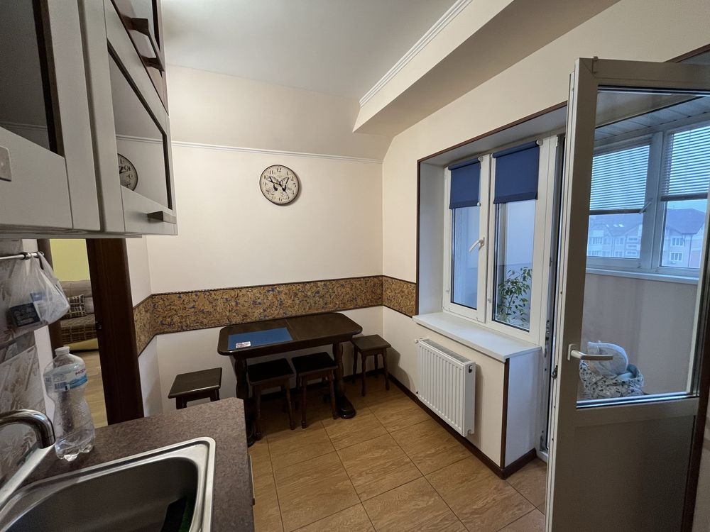 В квартирі є все необхідне: два дивани, кондиціонер, шафа, вмебльована кухня, ванна, тепла підлога в коридорі, кухні та сан.вузлі.