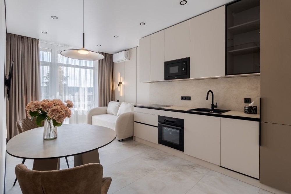 • Комфорт Кондиционер, Подогрев полов, Ванна, Мебель на кухне, Панорамные окна, Пожарная сигнализация, Консъерж, Охраняемая территория, Гостевой паркинг, Подземный паркинг, Лифт