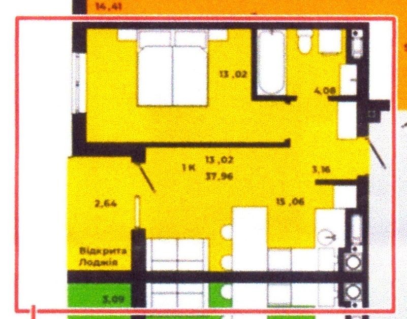 • Загальна площа: 38 кв.м