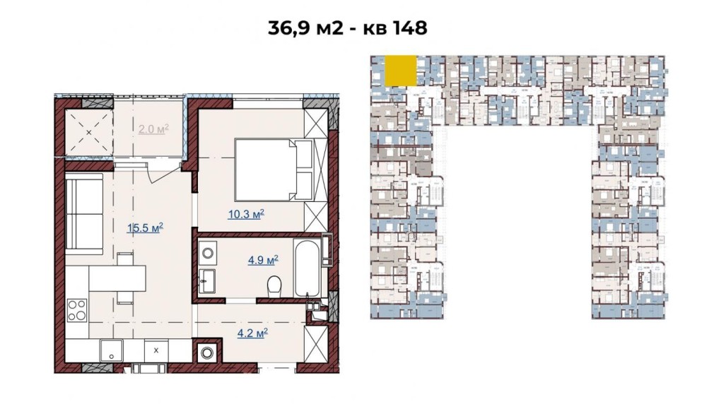 • Общая площадь 36.9 м2
